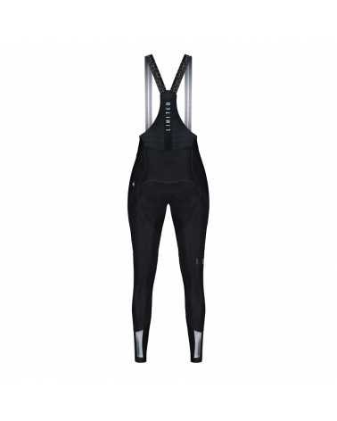 Culotte largo que incorpora los tirantes planos, heredados del modelo ABSOLUTE 3.0, realizados en cinta elástica microperforada. Adaptados a la anatomía femenina, aportan sujeción óptima y suficiente anchura para distribuir el peso de la ciclista cómodamente.