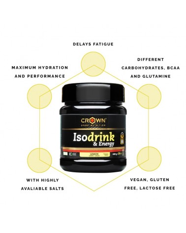 Isotónico Crown Isodrink & Energyes una bebida deportiva en polvo de la más alta calidad y con una composición premium que aporta todos los ingredientes necesarios no sólo para mantener sino para mejorar el rendimiento en tus entrenamientos y competiciones.