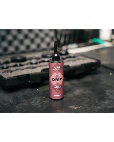 Para aquellos que conducen en mojado constantemente, nuestro nuevo UFO Drip para condiciones húmedas ha sido desarrollado exclusivamente para maximizar los beneficios de un lubricante de cadena de cera, al tiempo que resiste el deterioro a través de condiciones de conducción húmedas.