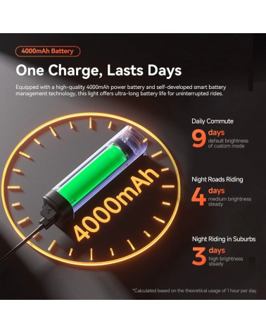 Incorpora una línea de corte suave mejorada con diseño antideslumbrante, reduciendo el riesgo de molestar a otros usuarios de la vía. Su batería de litio premium de 4000 mAh proporciona una larga autonomía y se recarga rápidamente mediante puerto tipo C.