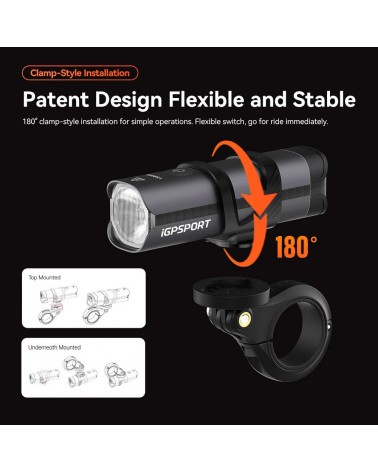 Fácil de instalar y desmontar, es compatible con extensiones de ciclocomputador iGPSPORT y soportes para luces. Puede montarse tanto en posición superior como inferior, facilitando su almacenamiento y carga.