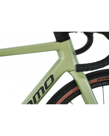 - Neumático delantero: Pirelli Cintauro Gravel RC Classic 622-45, flanco color tan