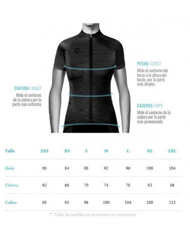 Su panel frontal está confeccionado en un tejido elástico y compresivo, mientras que la parte trasera incorpora un tejido perforado que aporta una mayor transpirabilidad.