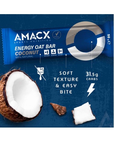 La barre Energy Oat Amacx offre une source d'énergie équilibrée grâce à sa combinaison de glucides simples et complexes, permettant une absorption progressive des nutriments pendant les efforts prolongés. Sa base de flocons d'avoine apporte des glucides complexes et une texture moelleuse qui facilite la consommation pendant les entraînements et les longues sorties.