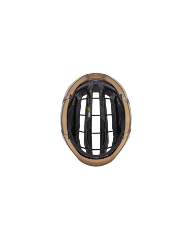 Lorsqu'un casque subit un choc, son rôle est de dissiper l'énergie de l'impact. L'approche conventionnelle en matière de conception de casques consiste à penser que plus il y a de mousse (EPS), meilleure est la gestion de l'énergie. Nous avons révolutionné la conception des casques de cyclisme en innovant au-delà de la mousse. Des « câbles » en fibre d'aramide traversent le casque et s'ancrent aux panneaux latéraux en fibre de carbone. En cas d'impact, la technologie AirCage* fonctionne comme un pont suspendu et est conçue pour répartir les forces localisées sur l'ensemble du casque.