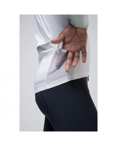 Ultra-léger et pliable, avec un nouveau patron optimisé qui améliore l'aérodynamisme sur le vélo. Il combine des tissus en nylon et élasthanne qui offrent une protection efficace et une grande adaptabilité grâce à leur élasticité optimale. Le panneau arrière utilise un tissu élastique ultra-léger qui permet d'évacuer la chaleur résiduelle lorsque l'intensité augmente. Dans cette nouvelle version, les ouvertures à l'arrière ont été redessinées pour faciliter l'accès aux poches du maillot.