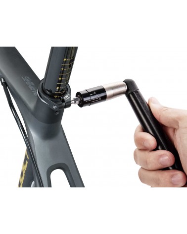 Clé dynamométrique compacte et facile à utiliser qui permet un réglage correct des vis du cadre et d'autres composants aux valeurs de couple recommandées pour améliorer la sécurité et les performances. Vous pouvez transporter deux embouts de votre choix à l'intérieur de la Nano TorqBar X. Plage de couple : 2 - 6 Nm.