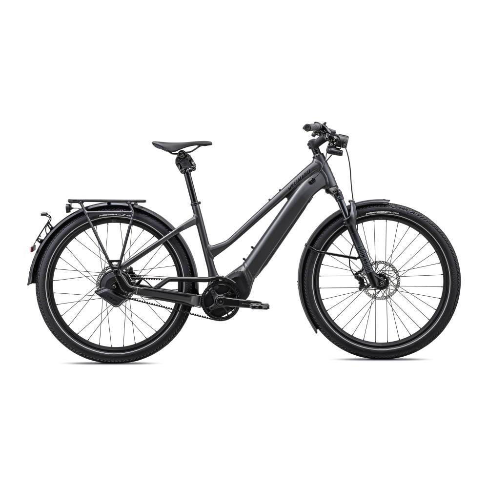 - Cadre : aluminium E5, support moteur sur le boîtier de pédalier, batterie entièrement intégrée et verrouillable dans le tube diagonal, acheminement interne des câbles, verrou et support de porte-bagages avant, patte de dérailleur coulissante