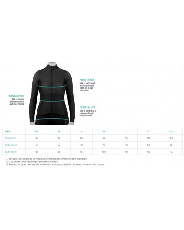 Manches parfaitement ajustées, pour ne pas pénaliser l'aérodynamisme. Poignets conçus pour s'enfiler facilement dans des gants longs.